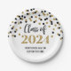Classe graduation personnalisable de 2024 assiettes en or glamour et noir confetti motif et élégant texte en lettres de style.