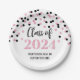 Classe graduation personnalisable de 2024 assiettes en rose glamour et noir confetti motif et élégant texte de style lettré à la main.