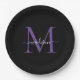 Assiettes En Carton Noir violet violet Monogramme moderne élégant Scri