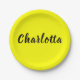 Assiettes En Carton Nom de personnalisation noir | Couleur jaune néon