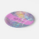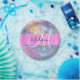 Nom monogramme irisé holographique rose, pêche et aqua, et plaques de papier initiales. Votre nom personnalisé et votre monogramme sont écrits dans un élégant script écrit à la main avec un arrière - plan rose. Un cadeau d'anniversaire ou de Noël parfait !