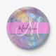 Assiettes En Carton Nom du monogramme d'iridescendance rose-fille