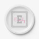 Assiettes En Carton Nom et monogramme encadrés | Gris clair et rose