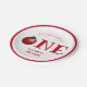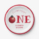 Plaques de papier pour votre première fête d'anniversaire sur le thème de la coccinelle. Il inclut les mots "Notre petite coccinelle est une" avec le mot "un" commencé avec une illustration de coccinelle. Les plaques papier comprennent également un nom personnalisable.