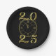 Plaques de papier New Years Eve Party Black and Gold avec un compte à rebours en faux or 2025 jusqu'à minuit.