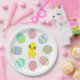 OEufs de Pâques peints sur des plaques de papier blanc. Texte prêt à être personnalisé pour Pâques, vacances, Anniversaire et plus.