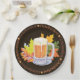 Feuilles de bière et d'automne sur la couverture de l'assiette de papier Oktoberfest.