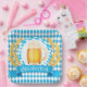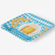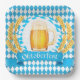 Plaques en papier de pâte de bière de l'Oktoberfest Frothy Beer. La Mug de bière de l'Oktoberfest sur à damiers drapeau bleu entouré d'une couronne de blé.