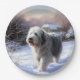 Assiettes En Carton Old English Sheepdog Laisser neiger Noël