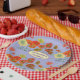 Orange Jaune Violet Islande Poppy Fleur Anniversaire Fête Motif Assiette, avec un nom entièrement personnalisable. Conçu à partir de mes aquarelles originales.