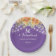 Elégante plaque de papier d'anniversaire fleurie avec étonnante aquarelle bouquet rose orange avec des lampes à cordes sur fond violet.