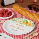 This beautiful and elegant plate features watercolor oranges, daisies and foliage. The text combines handwritten script and serif fonts for a stylish and modern look. This is perfect for a spring or summer rustic baby shower.