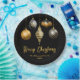 Cette assiette de vacances élégante et glamour présente des ornements dorés et noirs en bauble de Noël sur un arrière - plan noir. Le texte combine écriture manuscrite et polices sans serif modernes pour un look élégant et sophistiqué. Les étincelles et la parties scintillant apportent une touche festive et magique. C'est parfait pour les fêtes de Noël et les fêtes de fin d'année.