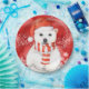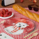 Amusant et festif, ce design présente un ours polaire dans un Santa Hat rouge vif et un foulard rayé blanc et rouge, sur fond de rouge vif avec un tourbillon magique de flocons de neige autour de lui et des flocons de neige tombant derrière lui.