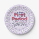 Ces assiettes sont parfaites pour des collations à la fête de la première période de votre enfant ou de votre fille adolescente. Il est doté d'une adorable bordure de produits menstruels comme des serviettes hygiéniques, des doublures, des gobelets menstruels et des tampons. Dessiné dans un style kawaii de dessins animés avec de petits visages heureux, dans un coloris pastel violet et blanc. Le front a le titre 'Joyeuse fête de première période à notre bien-aimé________', que vous pouvez modifier pour ajouter le nom de votre fille. 🩸 Pour plus de fournitures de première période, visitez mon magasin Zazzle.com/JessicaAmberArtist 🩸 Message me concernant les commandes personnalisées!