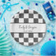 Create personalized paper plates for weddings and other special events. These paper plates have a black and white checkerboard patterned background with painted black squares and alternating plain white squares. Your names and wedding date (or other custom text) appears in black lettering.