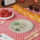 Élevez vos festivités de Noël. L'assiette de la fête tropicale a un joyeux accueil de Noël. Créez un accueil unique et de Noël sur l'assiette pour vos amis et votre famille. Customisez facilement l'assiette si vous voulez votre propre salutation. Laissez la saison des fêtes commencer par un Joyeux Noël !