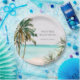 Assiettes En Carton Palmier Tropical Personnalisé Feuilles Plage Bleue