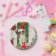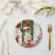 Papillon Chien Noël assis à l'extérieur de la maison décorée avec la couronne de Noël, le sapin de Noël est une idée cadeau de Noël parfaite pour les amoureux de les chiens.