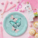 Cette plaque à papier n'a aucun texte, juste une belle conception graphique de trois papillons. Vous pouvez ajouter le texte avec le bouton de personnaliser. Cette serviette serait grande pour un thé d'été pour les dames. L'arrière - plan derrière les papillons est une jolie nuance de bleu de ciel avec les points blancs dispersés minuscules. Il y a trois papillons. Le central est le plus grand et est des nuances de bleu avec un corps noir et des accents noirs sur les ailes. Il y a deux plus petits papillons roses, un au-dessus et un de ci-dessous, les bleus. Les papillons plus petits sont rose-clair avec un ombrage rose plus foncé et un corps noir. Les articles assortis sont dans la collection de "papillons" dans mon magasin de Zazzle.