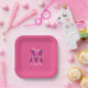 Quelle merveilleuse plaque de papier personnalisée pour une fête de retraite heureuse. Arrière - plan est rose, monogramme est violet aubergone, nom et Happy Retirement texte est blanc. Choisissez carré ou rond. Tous droits réservés © 2025 Alan & Marcia Socolik.
