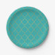 Assiettes En Carton Parti Motif Quatrefoil turquoise & Gold