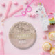 Adorable, étoiles dorées pétillantes en combinaison avec rose girly - arrière - plan or rose. Tendance, girly, doux, lunatique bébé fille 1er anniversaire assiette de fête. Twinkle Twinkle Little Star.