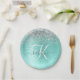 Personnalisez facilement ce design chic et branché de plaques en papier avec une jolie parties scintillant brillante en argent sur un arrière - plan métallique brossé turquoise.