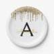 Assiettes En Carton Parties scintillant blanche et or Monogramme Anniv