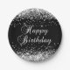 Assiettes En Carton Parties scintillant d'argent Noir Joyeux anniversa