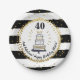 Célébrez la fille d'anniversaire/mec dans le style avec ces plaques de papier amusantes et festives avec un motif à rayures noir et blanc accentué avec des points confettis de parties scintillant en faux or et un gâteau d'anniversaire dessiné à la main. Ajoutez l'âge et le nom du célébrant et le texte personnalisé.