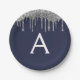 Assiettes En Carton Parties scintillant en argent bleu marine Monogram