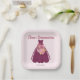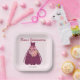 L'assiette de la fête en papier Quinceañera moderne est ornée d'une parties scintillant et d'une robe de chambre fleurie sur arrière - plan rose pâle.