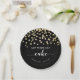 Plaque en papier mariage gras avec un arrière - plan noir, de grands points de confettis en parties scintillant dorée et du texte blanc. "Laisse-les manger du gâteau." Personnalisez avec vos propres nom et date.