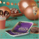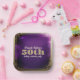 Cette plaque violette présente des éclats de parties scintillant dorée. L'arrière - plan violet profond contraste avec les accents dorés. La parties scintillant capte la lumière, ajoutant une touche de scintillement. La combinaison du violet et de l'or donne un ton luxueux à tout événement.