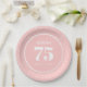 Pink avec la parties scintillant de poussière d'étoile blanche plaque de papier pour femme 75e anniversaire de fête personnalisée avec un nom, l'âge, et la date de fête. Tout le texte est personnalisable afin que cette plaque papier puisse être conçue pour n'importe quel âge.
