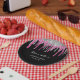 Assiettes En Carton Parties scintillant rose chaud argent gouttes noir