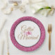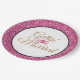 Plaque de papier de fête montrée dans un joli imprimé en faux parties scintillant rose autour de la jante et le centre blanc. Gettin' Marié dans un script sophistiqué au centre avec deux coeurs de couleur rose. Montré en 9 po de taille. Vendu en paquet de huit. Customisez cet objet ou achetez tel quel.