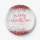 Assiettes En Carton Parties scintillant rouge Joyeux Noël Party Blanc