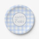 Assiettes En Carton Pastel Blue Happy Pâques Plaid Motif