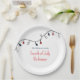 Plaques de papier 4 juillet patriotique, avec un design de lampes à cordes rouge blanc et bleu. Avec des lettres typographiques personnalisables en rouge et bleu, vous ajoutez vos propres informations. Un complément festif à vos provisions de barbecue d'été.