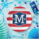 La conception de la plaque en papier patriotique comprend un cadre décoratif avec un monogramme personnalisé initial, des accents d'étoile et des bandes horizontales. Couleurs bleu marine, rouge et blanc.