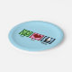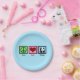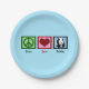 Un joli signe de paix vert, un coeur rouge et un beau panda dans un carré bleu. J'adore les ours de panda sur les assiettes de zoo mignonnes pour une fête d'anniversaire thématique safari.