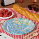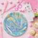 Assiettes En Carton Pearlescent Aqua & Gold en marbre liquide