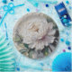 De délicats pétales de pivoine blanche forment une fleur florissante, accentuée par des touches de tons vert et de rose doux dans de lourds traits de peinture Impasto