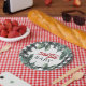 baby shower à thème père Noël Baby Christmas avec verdure de noël et plaid de buffle noir.
