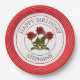 Personnalisez facilement le texte de la plaque de papier du parti avec le modèle fourni. Le design est art numérique à commencer par la photographie florale d'une rose rouge et d'une tige qui a été numériquement découpée et répétée au centre. Il y a de petites bandes vertes défraîchies dans le arrière - plan pour la texture et une jante rayée rouge et blanche. C'est un bel ensemble fleuri, tendance, tout en longueur. Pas seulement pour les anniversaires ! Modifiez le texte pour les fêtes de jardin, les fêtes de thé ou ajoutez votre nom, votre initiale ou votre monogramme.