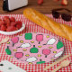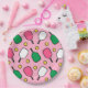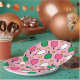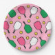 Fête de pickleball créative ou assiettes événementielles avec des pagaies vertes chaudes et cool et des boules jaunes motif sur arrière - plan rose pour vos joueurs de pickleball préférés.