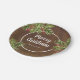 Ajoutez cette assiette de Noël à thème rustique à votre fête cette année. L'arrière - plan est un bois foncé accentué par la calligraphie manuscrite et l'aquarelle de pin et de baies. Personnalisez avec votre nom.