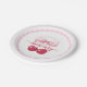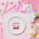 Serve treats in style with these paper plates adorned with glossy watercolor cherries and a pink bow, adding a coquette touch to your baby shower.